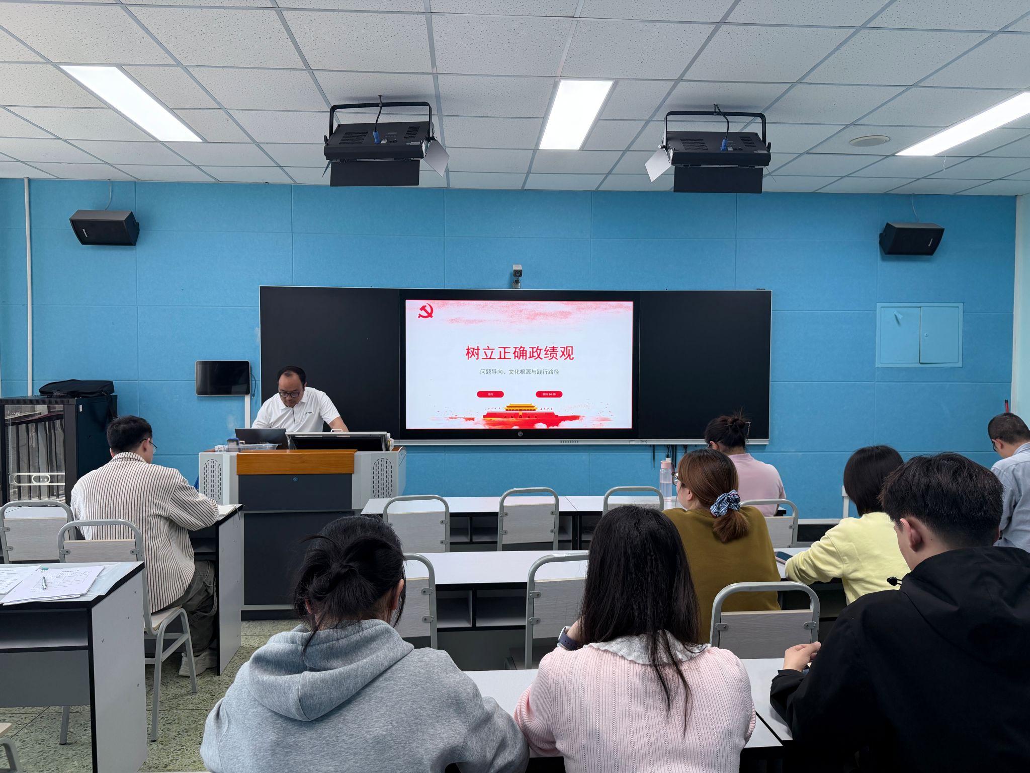为深入学习贯彻习近平总书记关于树立和践行正确政绩观的重要论述,引导师生党员筑牢思想根基、校准履职方向,4月10日,研究生工作部师生联合党支部特邀马克思主义学院蒋政教授,以《树立正确政绩观:问题导向、文化根源与践行路径》为题,为全体师生党员讲授了一堂深刻生动的专题讲座,以支部联学共建的形式,推动理论学习走深走实、见行见效。